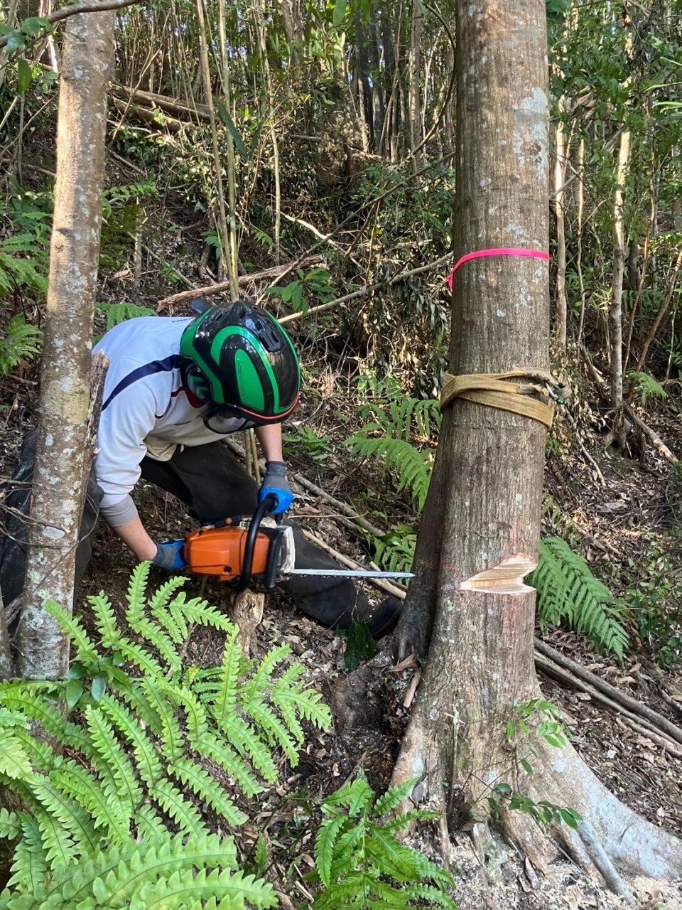 しかし、チェンソーの扱いには慣れてきた私達ですが、「追いづる伐り」に苦戦…!
