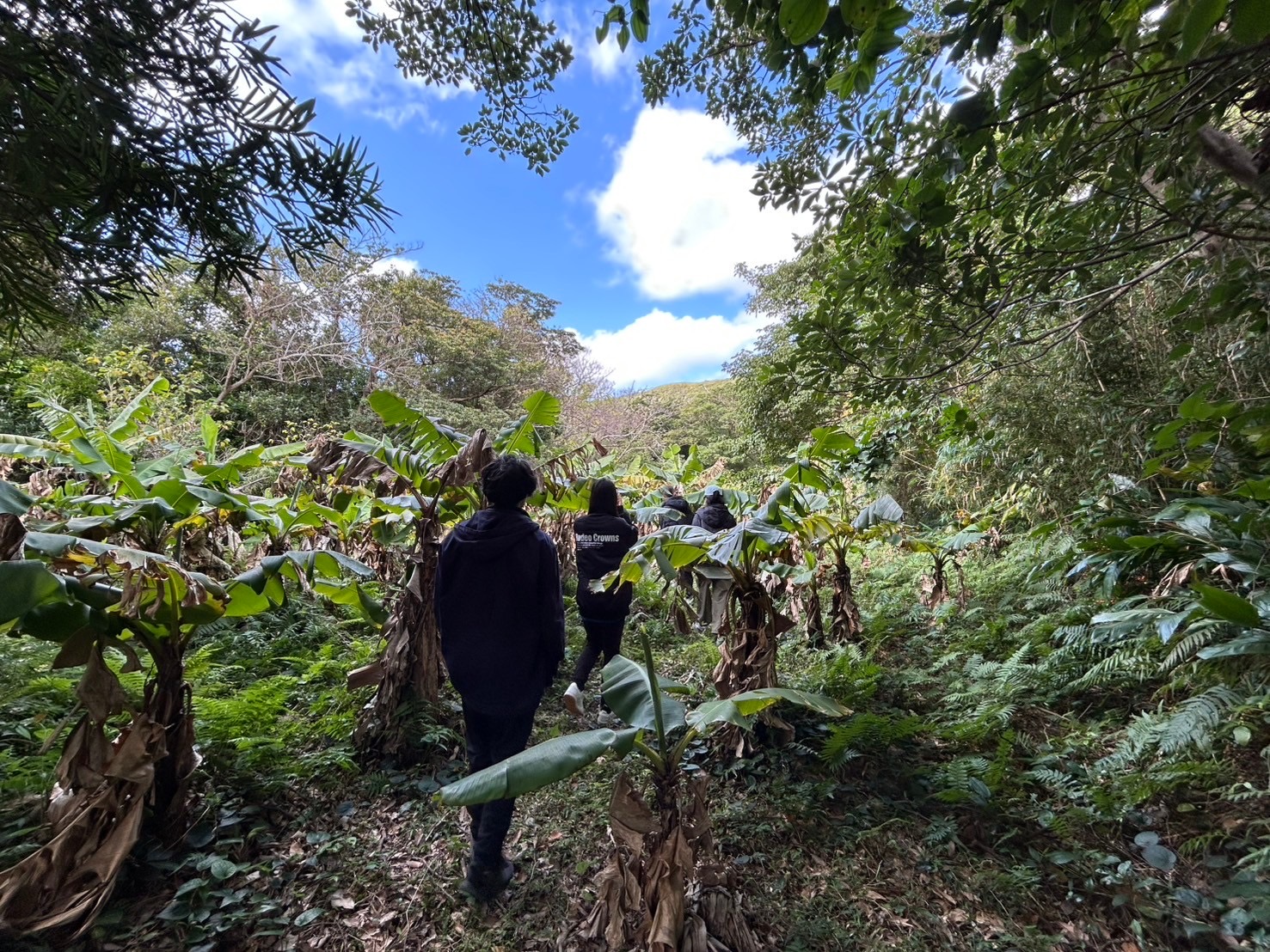 最初は、青く澄んでいる海が見える場所に連れて行っていただきました。所々斜めになっていた部分があったのですが、それは台風や波の影響だそうです。他にもバナナ畑や展望台、灯台、放牧場など様々な場所を周って観光しました。ガジュマルの木など自分の地元にはない植物や景色をたくさん見れたので良かったです😽夜には、毎週金曜にあるバレーボールの集まりに参加させていただきました。たくさんの島の人と交流できて、とても楽しかったです!