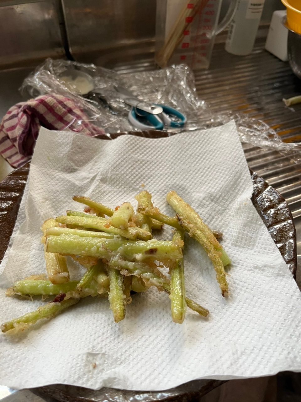 また、おばあさんにつわぶきのかわの剥き方を教わりました。我々とは経験が違いとても詳しかったです。実際に天ぷらにして食べたのですが、とても美味しかったです。ここまでで、島の食材をいろいろと堪能できて体力も十分なので残り3日頑張って行きます。
