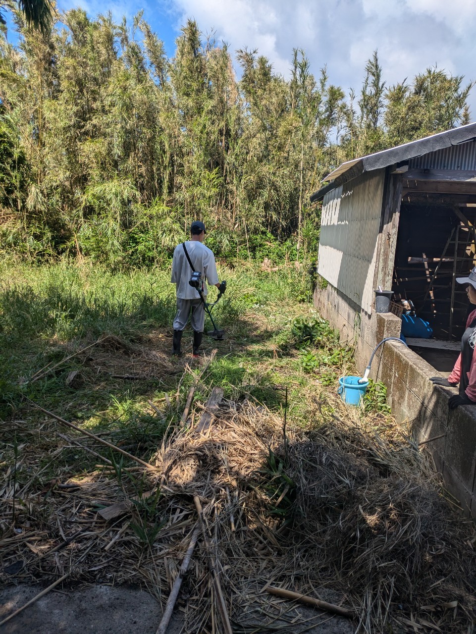 昼からは近所のおばあさん家の草刈りをしました。初めて草刈機を使いましたが、慣れるまでが難しく、暑い中での作業は高齢者にとっては非常にきついと感じました。草がなくなって見はらしがよくなって気持ちが良かったです。作業の休憩中に近くに生えていたへベスをサイダーの中に絞って飲みました。普段飲むサイダーとは違い酸味がしっかり効いており、疲れが吹っ飛びました。