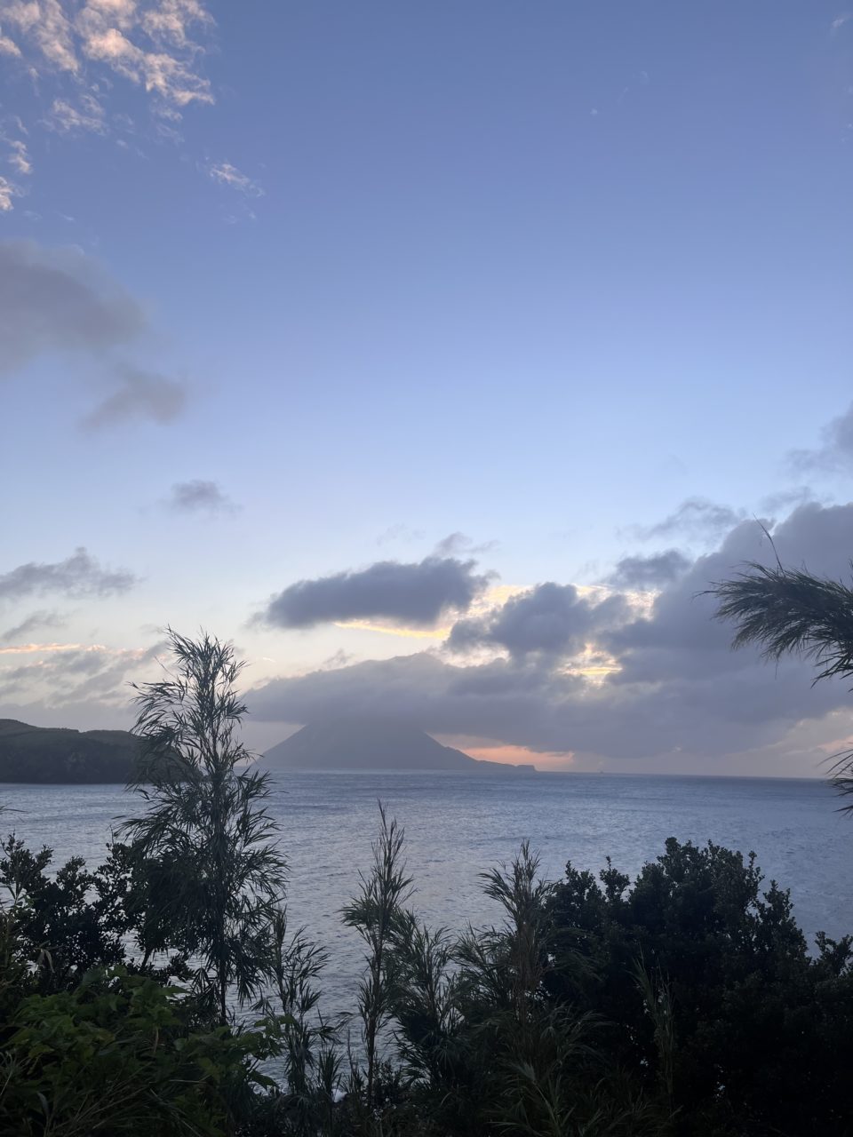 念願の夕日は見えなかったけど、向かいの硫黄島上空の雲の隙間から鮮やかなオレンジ色が所々見えて癒されました。