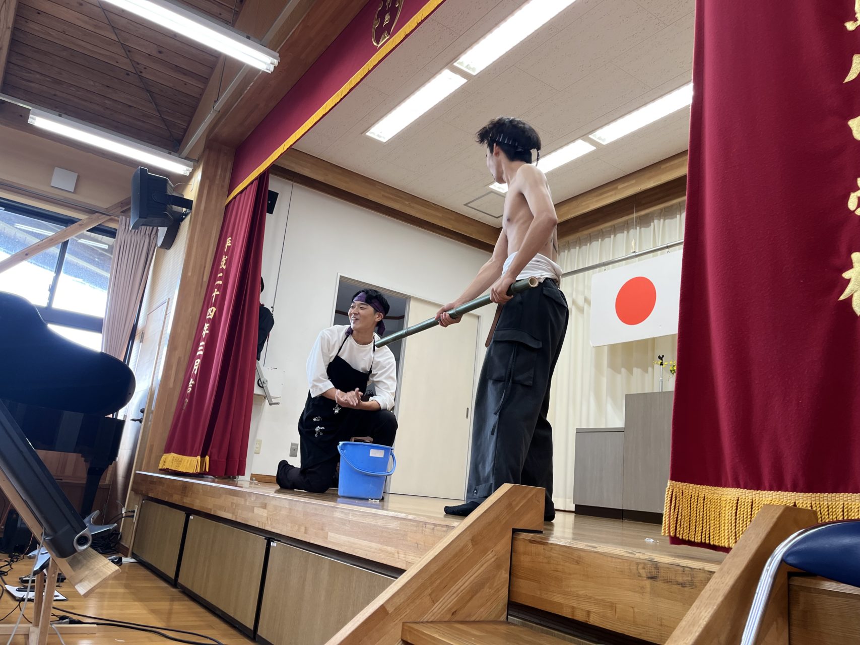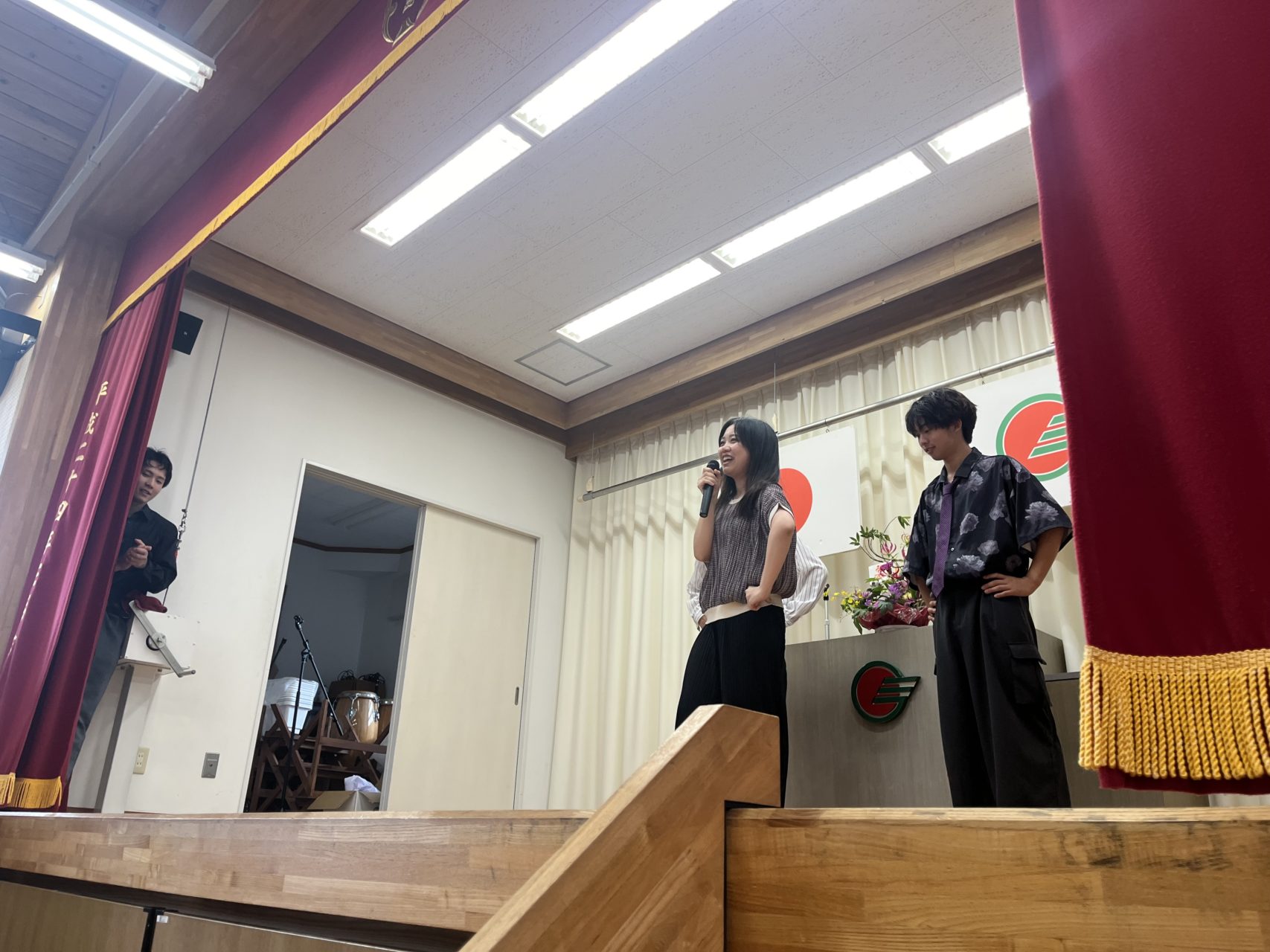 式典の後それぞれが余興として歌を歌ったり、一発芸をやったりと島の方々と交流しながら楽しい時間を過ごすことが出来ました。私たちが披露した芸や歌にもあたたかい拍手をいただけました。やるネタなどがしっかりと決まったのは前日だったため、一夜漬けのネタに不安がありましたが楽しんでいただけて嬉しかったです。ありがとうございました!