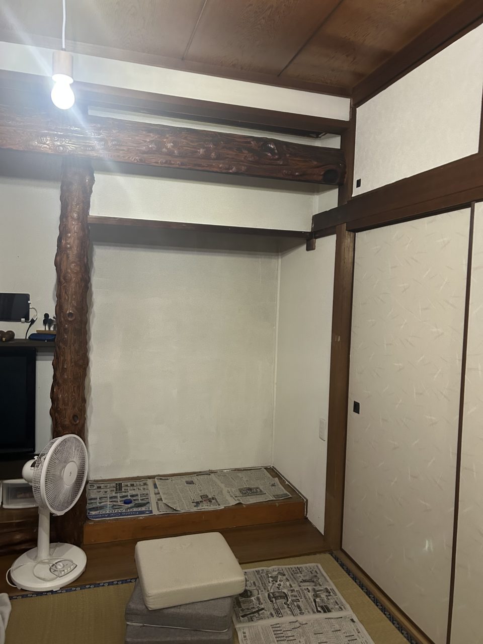 泊まっている宿は空き屋をDIYして作られていて、まだ手をつけられていなかった床の間を本棚にするDIYを始めました!