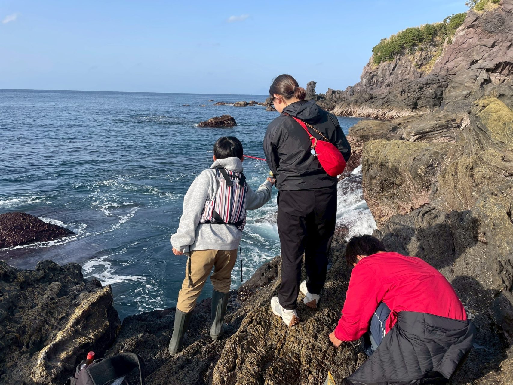 夕方になると、小学校から帰ってきた島の子に釣りを教えてもらいました!島の子はとってもたくましいです!!