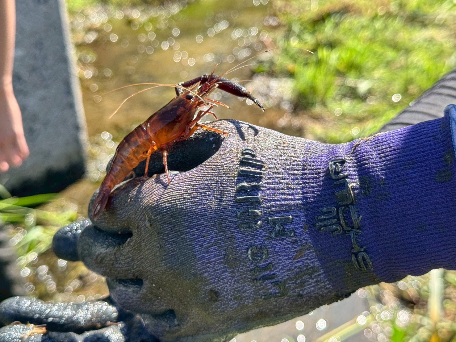 今日の午後は草取りをしました。トンボやカニやエビが沢山いて自然を感じました。🦀🦐水面がキラキラしていて綺麗でした。・:*+.\(( °ω° ))/.:+水面がキラキラしているとトンボが寄ってくることや、そのトンボによって蚊が減るということを初めて知りました。