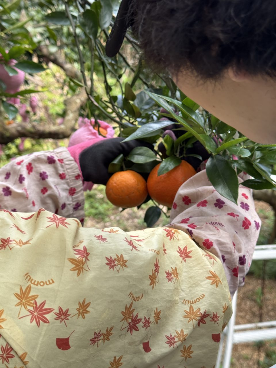 青みが残っているものや、まだ十分に色づいていないものは取らないように気をつけました。また、どこに脚立を立てればより多くのたんかんに手が届くかを考えながら作業しました。