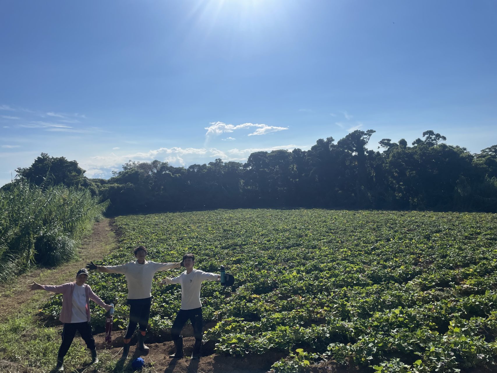 今日は、農家さんの畑で安納芋のつる返しをしました🍠