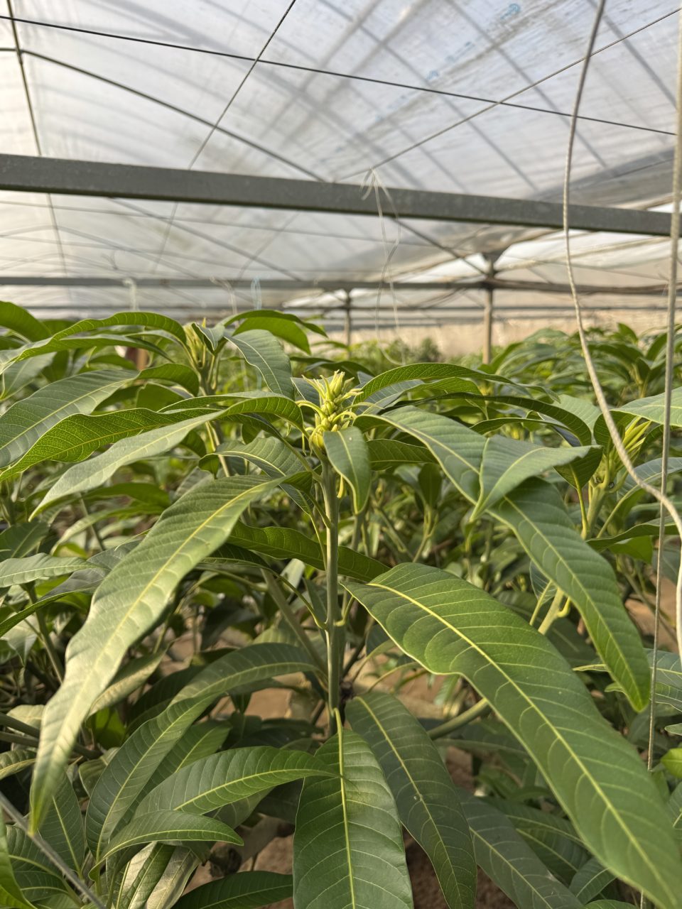 マンゴーの花は生ごみのようなにおいがするらしく、そのにおいに引き寄せられてハエが集まるそうです。ハエには不衛生なイメージがあったため、ハウス内にあえて放つと聞いて正直驚きました。現在マンゴーはちょうど花芽が出ている段階でした。