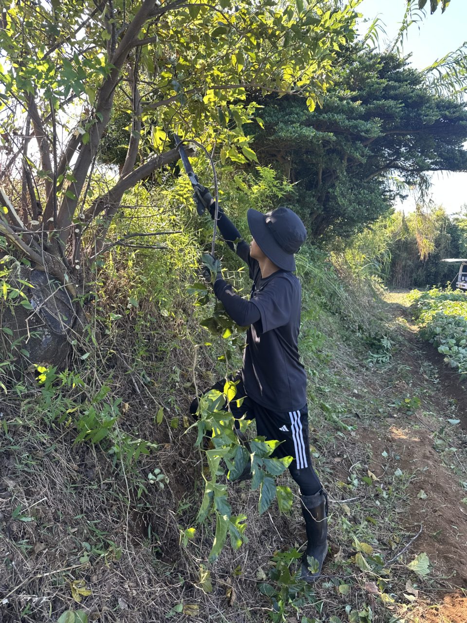 まずは畑の雑草駆除と木の伐採。この時期になると、雑草がさつまいも畑に侵食してくる。そんな、生命力で溢れる雑草たちをひたすら抜いていく作業。立っているだけで全身から汗がふきだすような炎天下の中、ひたすらに作業をしました