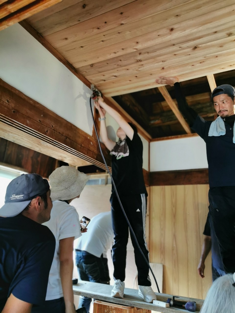種子島6日目の今日は空き家をリフォームしました!!初めて名前を聞く道具がたくさんあって最初は不安だったけど島の方々が優しく教えてくれて楽しく活動することが出来ました!たくさんの人と話して刺激を得ることができました!!最近は機械化が進んでいるけど今回の活動を通して手作業の大変さやそれ以上の達成感を得ることができ貴重な経験になりました!!