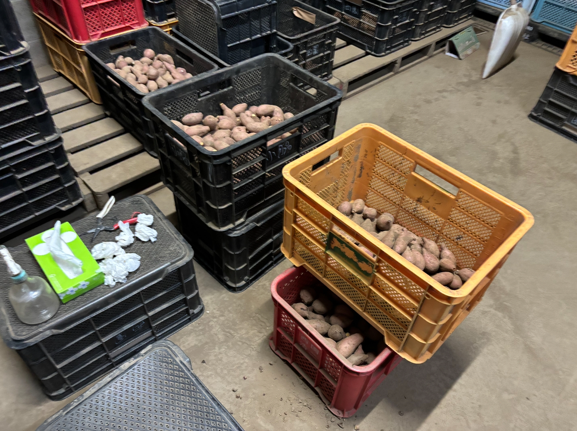 今日は芋の発送のための袋詰めと出荷準備、芋餅作りをしました!