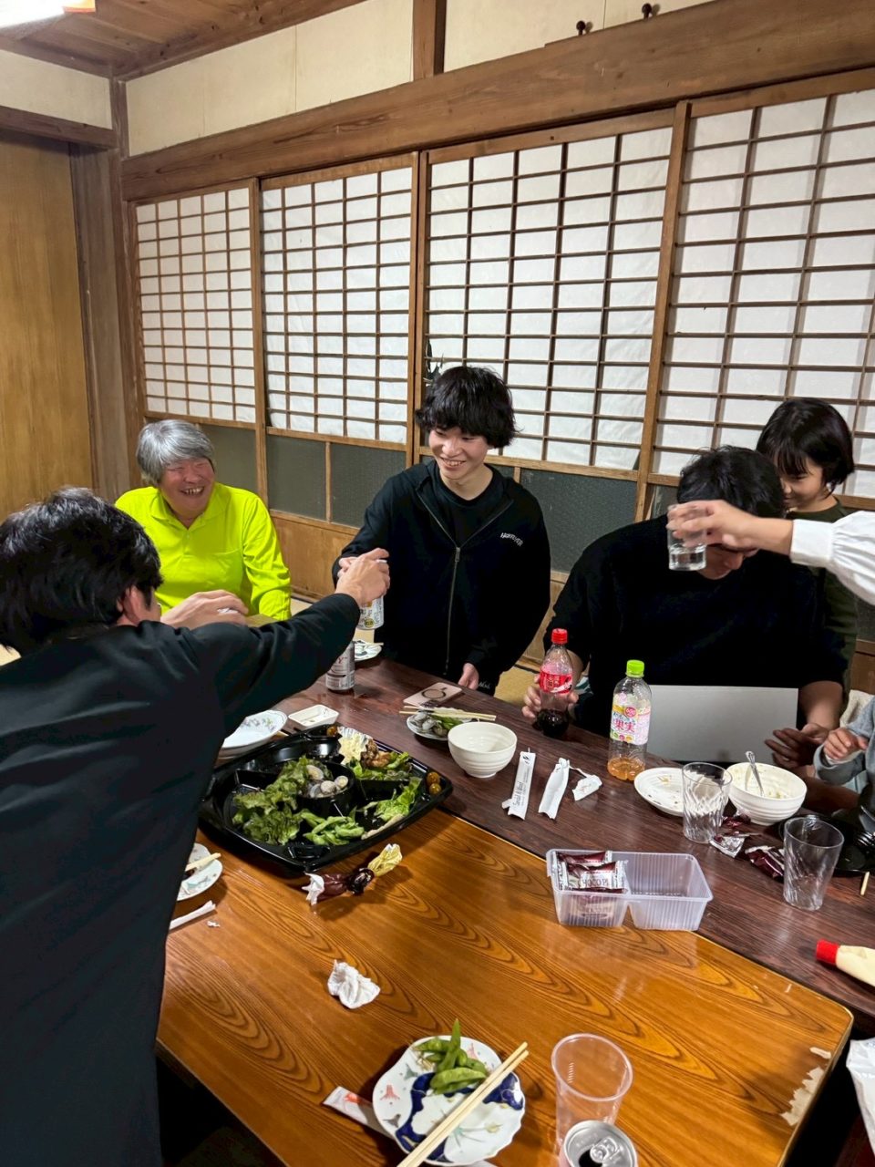 作業後の夜は、送別会を開いていただきました。これまでなかなかお話しする機会のなかった農家さんともゆっくり話すことができ、島の方々とも楽しい時間を過ごしました。