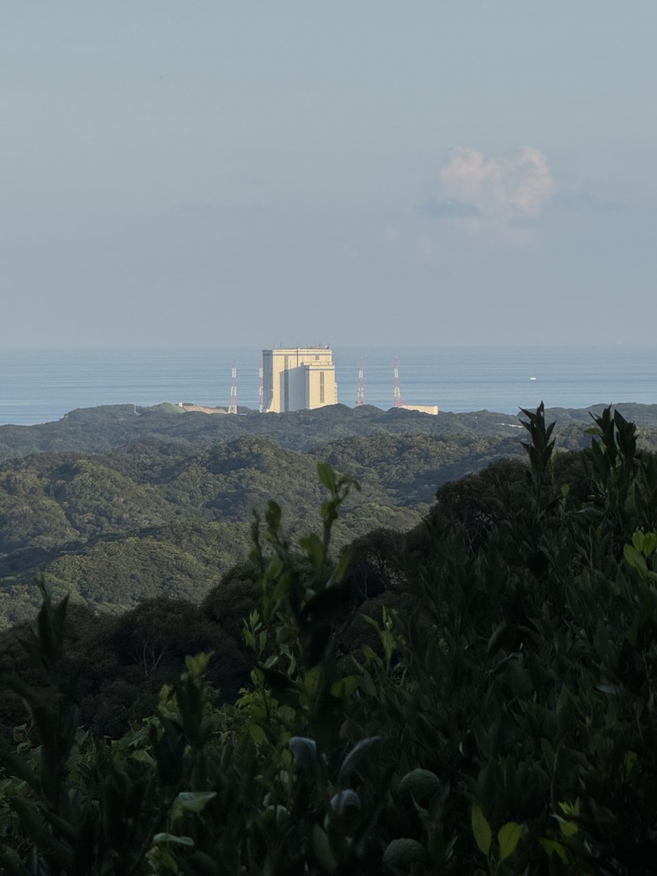 今日は、しんさくさんのたんかん畑で、植え替え用の苗木を成長させるためのスペースづくりを行いました。まずは草刈り機を使って草を刈り、さらにチェーンソーで木を切る作業もしました。特に印象に残っているのは、自分の身長の2倍ほどの高さの草を草刈り機で刈ったことです。暑さと草刈り機の重さで腕にきつさを感じましたが、作業を終えて山の上から景色を眺めたとき、その疲れが吹き飛ぶような感動がありました。後ろを振り返るとたんかんの木が広がる景色の奥に種子島宇宙センターのロケット発射台が見え、すばらしく雄大な景色に、これを見るために頑張っていたんだと大きな達成感を感じました。