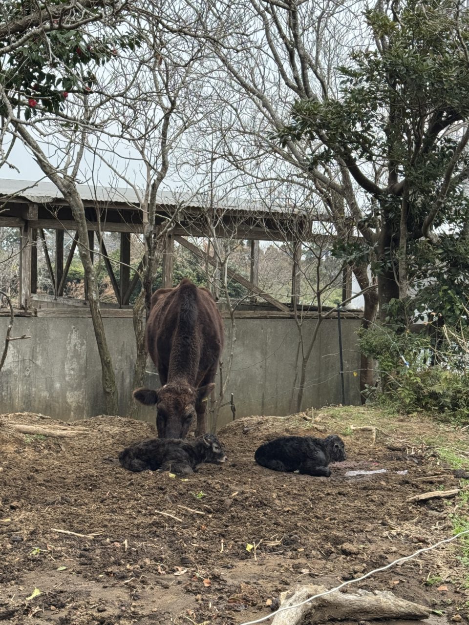 帰り際には、隣の牧場で生まれたばかりの双子の子牛も見せていただきました。双子はとても珍しいそうです🐂