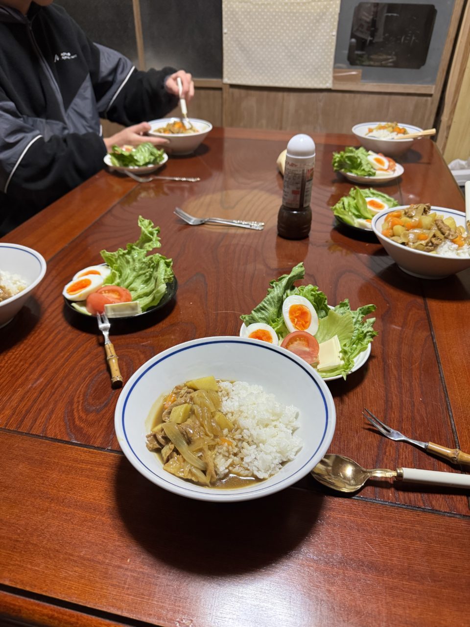 夕飯にカレーを作って食べた後、夜のミーティングでこの10日間の活動の目的・目標を再確認し、仲間と共有することで、明日からの活動のモチベーションがますます上がりました。