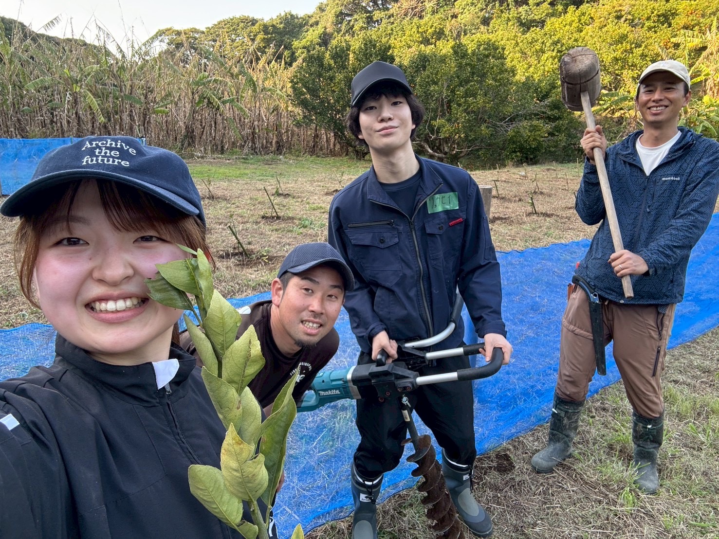 今日はヒデさんの圃場にてたんかんの仮植えと防風ネットを貼りました!