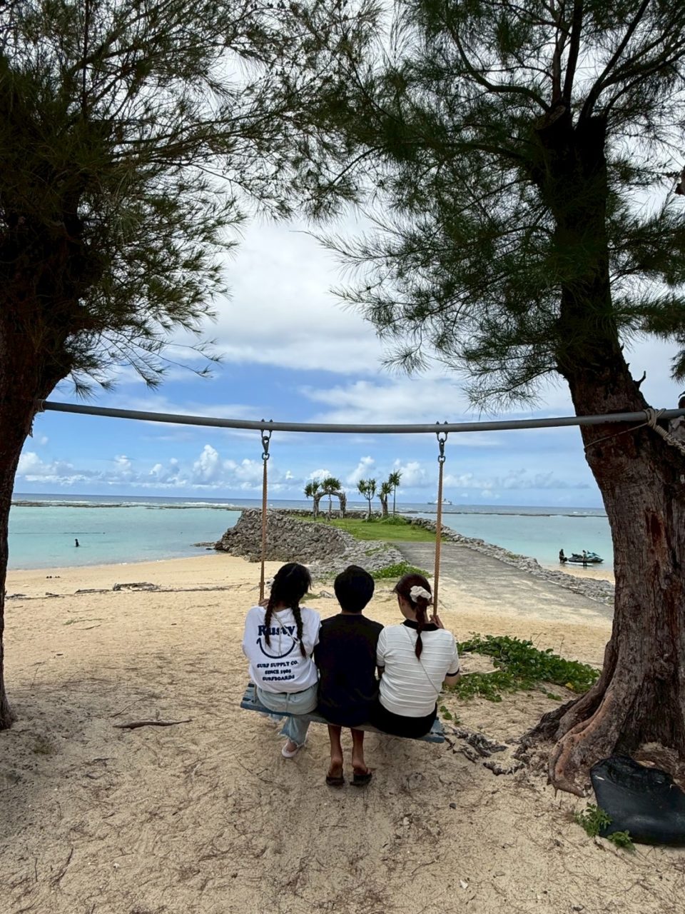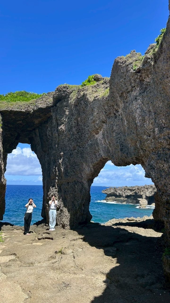 まず訪れたのは、犬田布岬と畦プリンスビーチです。エメラルドグリーンに輝く海は、宝石のように透き通っていて、視界いっぱいに広がる自然の美しさに、心を奪われました。ビーチでは、シュノーケリングをしました。水中を泳ぐ魚たちの姿がかわいかったです。