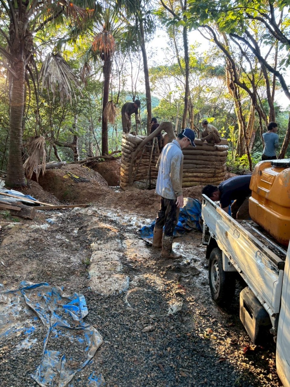 今日はアースバックDAY 1‼️皆さんが過酷と噂していたのでドキドキしていました💦作業場についてから一旦コーヒーを飲み作業を始めました。ですが発電機で不具合、。、。どうなるのかと心配でしたが、出来る作業を進めること数時間。お昼ご飯のカレー🍛を食べた後に復活‼️歓喜の声があがっては束の間、今度は材料を混ぜる機械で不具合、。ですが知恵の交流で復活‼️少し作業しましたが、大雨により1時間ほど中断☔️止んでから必死で作業しました💪