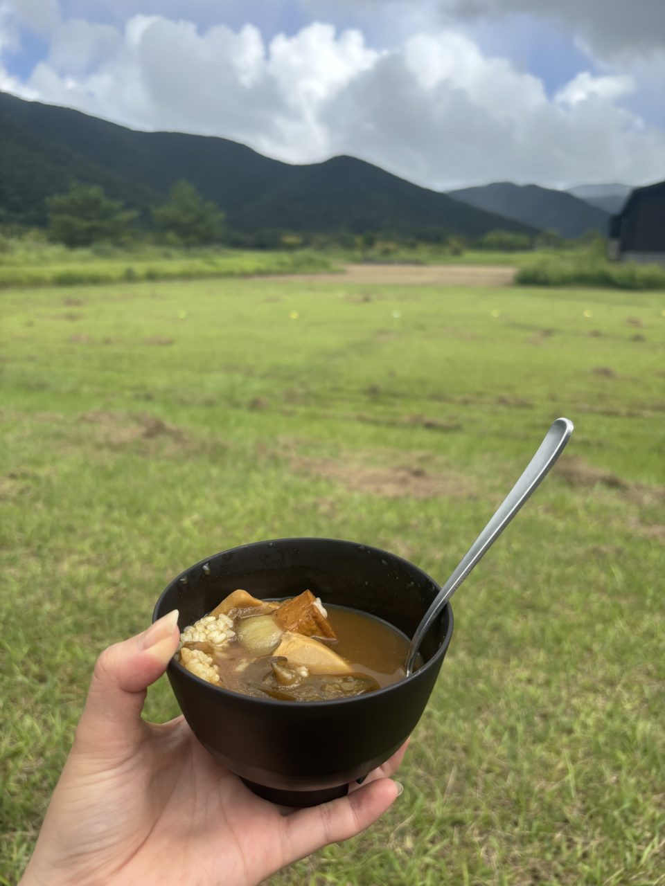 次に、奄美大島世界遺産センターで自然の生態系を学び、お昼は芝生の上でカレーを食べました。