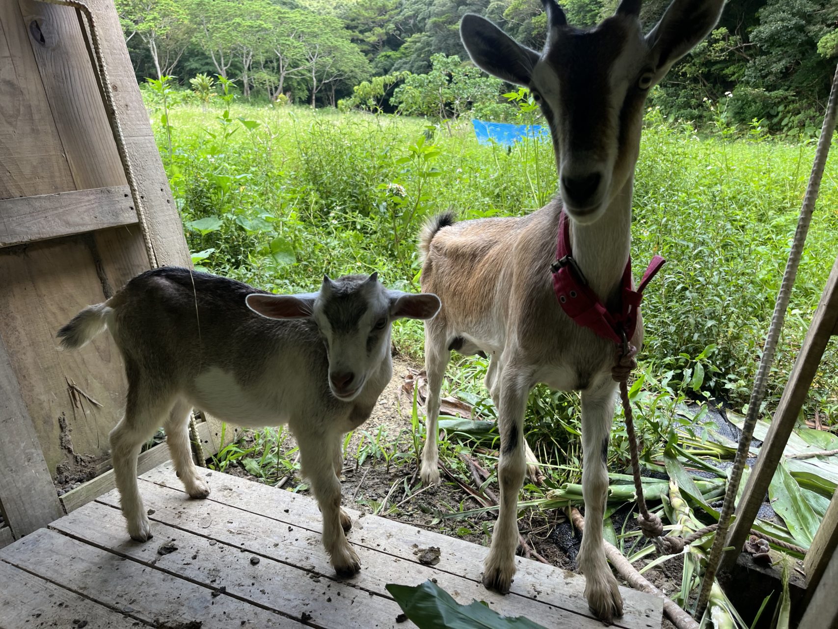 その後は畑へ。にわとりちゃん達と、ヤギちゃん達のご飯をあげました❤️毎日たくさんの種類のにわとりちゃん達に会えて嬉しいです。私のお気に入りの子は、、、、選ぶのが難しいですが、、アメリカンシルキーという種類の子です🥰ヤギさんも今日はいつもと違うご飯、草木?を持ってきましたが、他の草よりも美味しそうに食べてました😊