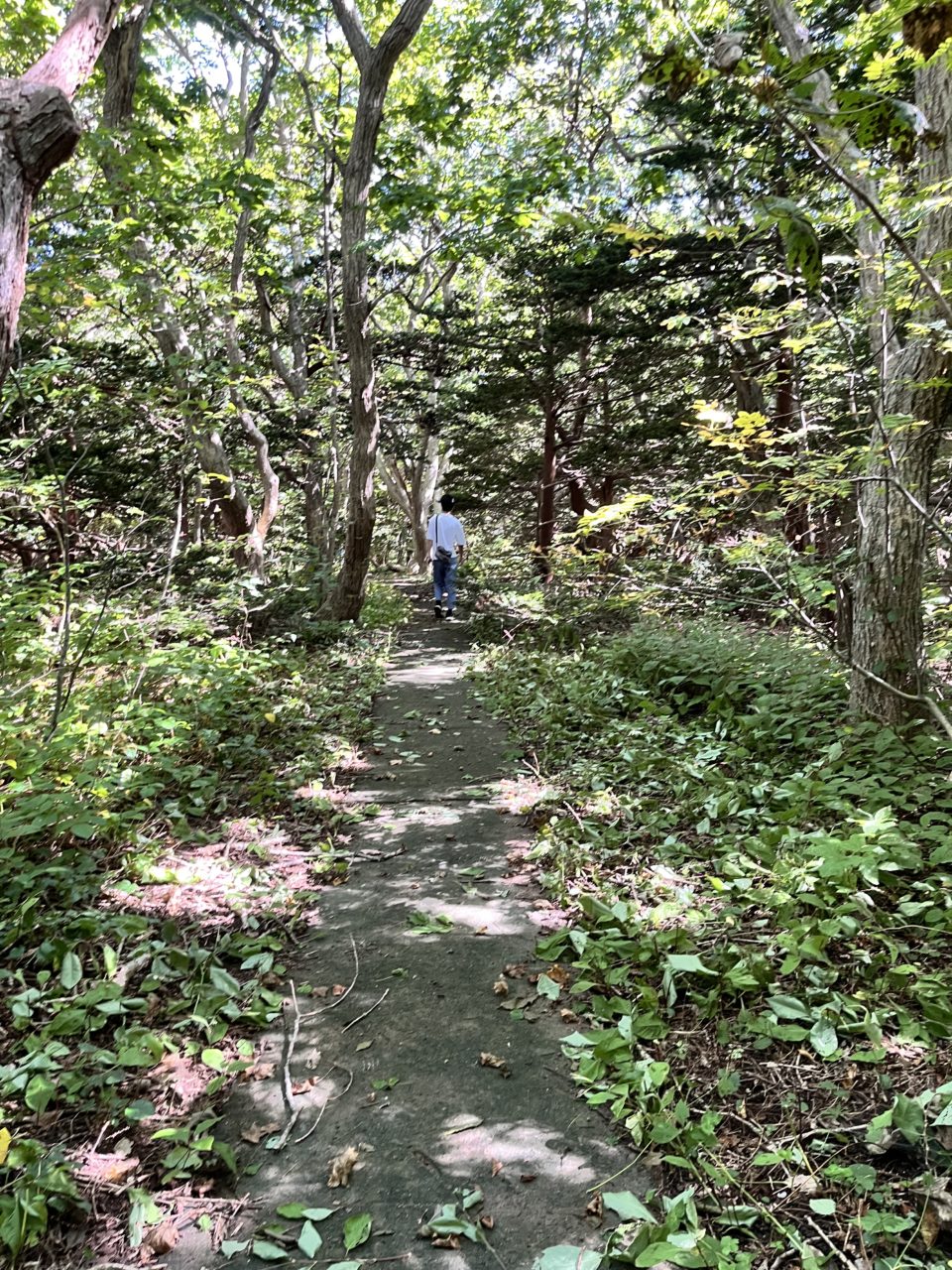 まず一つ目、午前中から焼尻島の散策に行きました。行ったのはオンコ原生林。中に入ると、明るい森が広がっていました!進めば進むほどオンコの木がありました。いろんな形があり、低く横に広がっている木やぐにゃっと曲がった木があり、見ていて飽きなかったです!