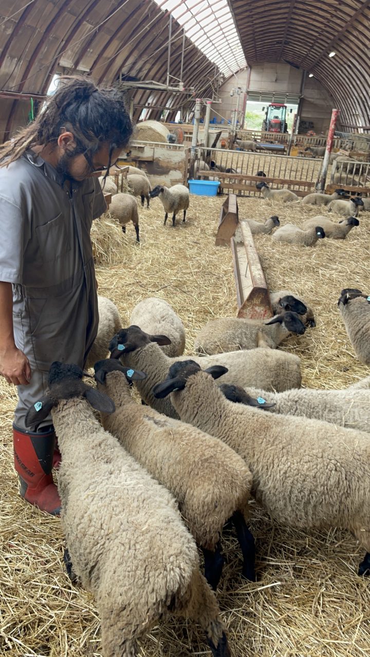 本日は羊の牧場に見学させていただきました。牧場の中には3〜4つの仕切りがあり、大きさごとで区別しているそうです。この牧場は以前まで町が運営していましたが、人手不足などの影響により、民間に引き渡しとなりました。しかし、牧場の中は綺麗で整備も行き通ってるのも実感できました。人手不足に関しては季節ごとでリゾートバイトのようなものを募集してるとのことでした。この牧場にいる羊はサフォークという羊でラム肉独特の臭みがない珍しい羊を育てています。このような牧場がなくならないよう、まずは島の認知度を上げる、興味を持ってもらう活動が我々ボランティアの使命なのではないかと牧場見学を通して感じました。