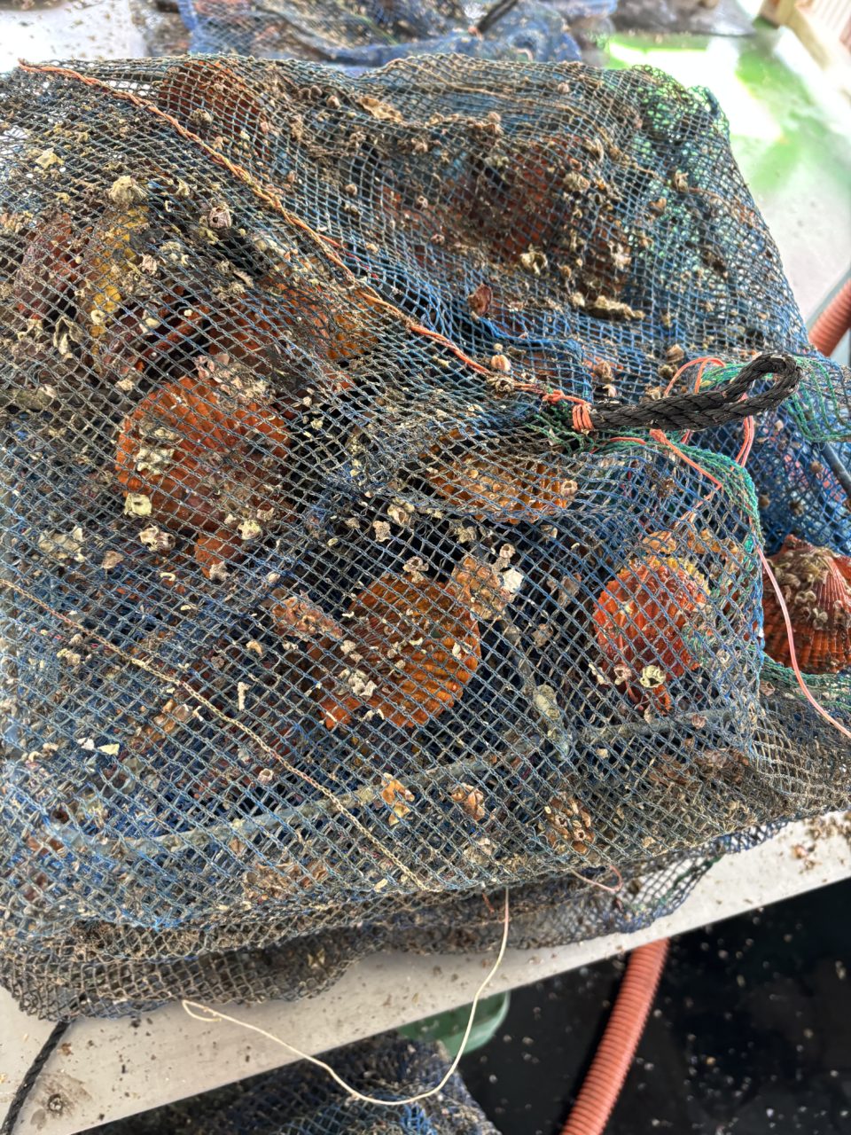 今日もヒオウギ貝のお仕事をしました。作業は筏のような場所で行うため、常に揺られており、作業が終わり、陸に戻ったあともまだ揺れてる感覚が残ります。お仕事の最後にヒオウギ貝を何個かいただきました。夜ご飯に、そのヒオウギ貝をかき揚げにして食べました。とっても美味しかったです!ヒオウギ貝を使ったお料理を屋形島に来て何品か食べましたが、どれもとても美味しく、ヒオウギ貝は万能ということが分かりました!明日の午前中で、ヒオウギ貝の作業は最後になるので、精一杯頑張りたいです!