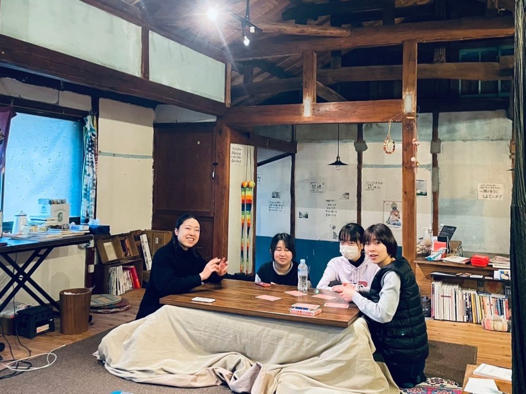 レクリエーションでは、カードゲームで遊んだり、ヒオウギ貝や海岸にある様々な貝殻を用いたランプシェードなどの作品作りをしました。また、ディスカッションでは、村おこしとはどういうことなのか、人や地域のためになるとはどういう事なのか。世話人の後藤さんから投げかけられた問いを異なるバックグラウンドを持つ参加者同士で考えて話し合う中で地域のために活動する事の難しさを感じました。