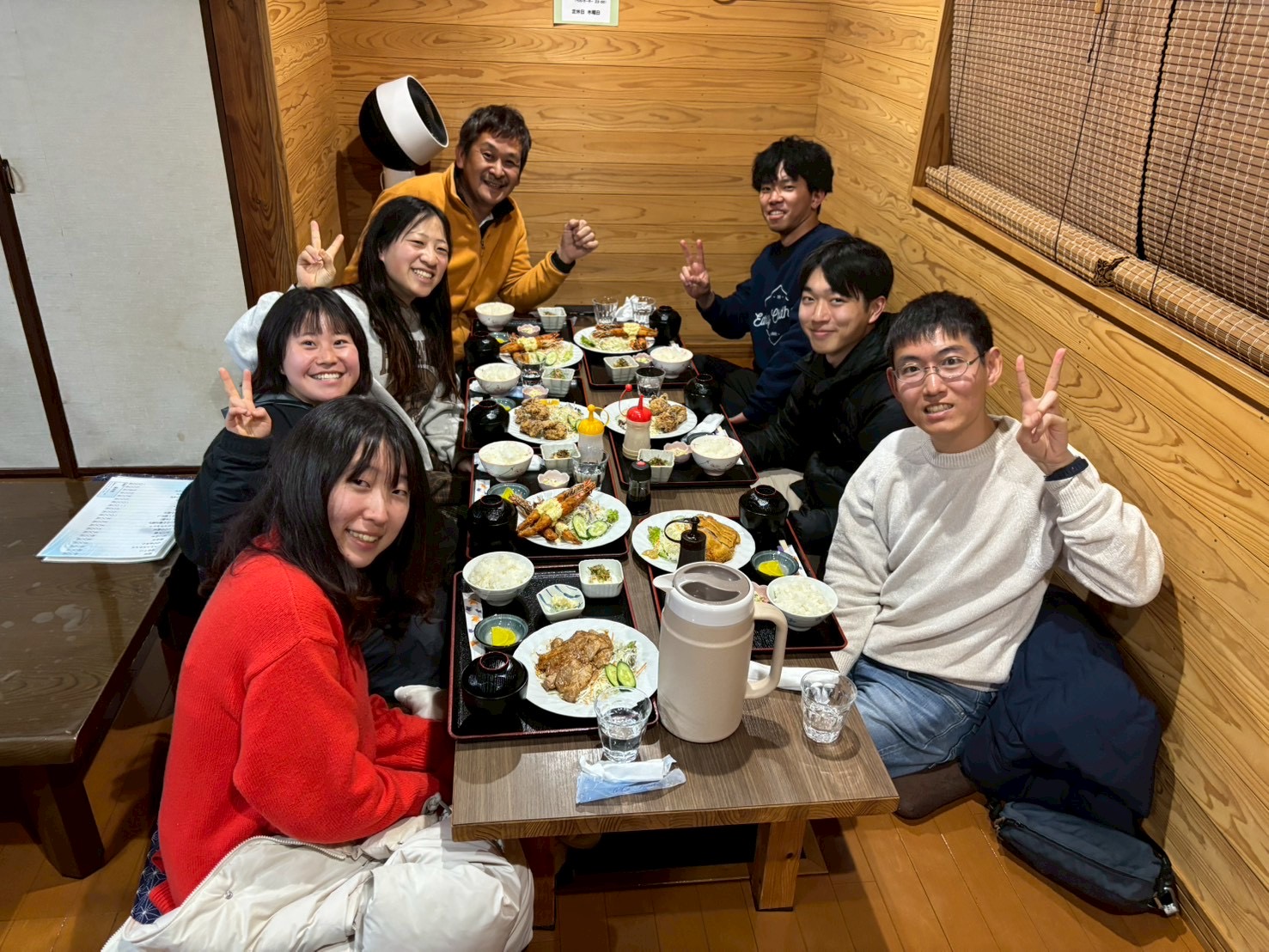 最後に皆でごはんに連れて行っていただきました。地元のおじさま方がカラオケを楽しみながらごはんを食べていて、とても楽しい空間でした!