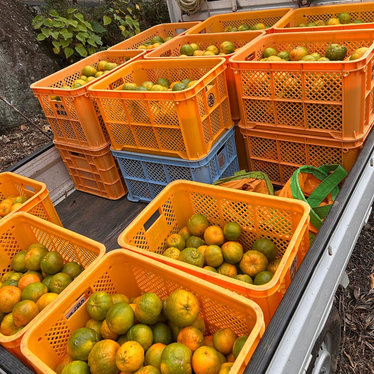 午後はスイートスプリングの収穫をしました。働いてる方々は簡単そうに木々の間の作物をとっていましたが、実際に行ってみると脚立の置き方から取るまでとても難しくこの作業も体力とどのように脚立を置こうか考える力を使いました。
