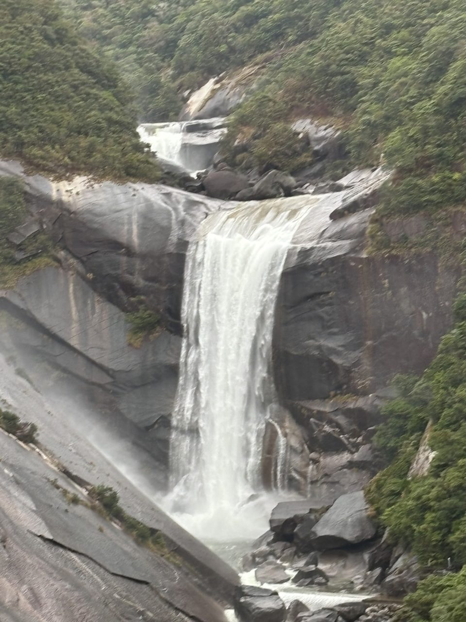 お昼は定食屋でトンカツを食べました。ボリュームがあり美味しかったです。午後からは議会の傍聴がありました。屋久島の空港拡大に関する題で観光や雇用の面から全員が賛成意見でした。私も屋久島に多くの観光客が増えて欲しいという面から賛成と考えています。しかし一部では環境破壊の面から反対と考えている人もいるそうです。私は便利さと環境を守ることのどちらも両立することはできないのかと考えさせられました。その後に松峰大橋と千尋滝に行きました。とても景色が綺麗でいい思い出になりました!!