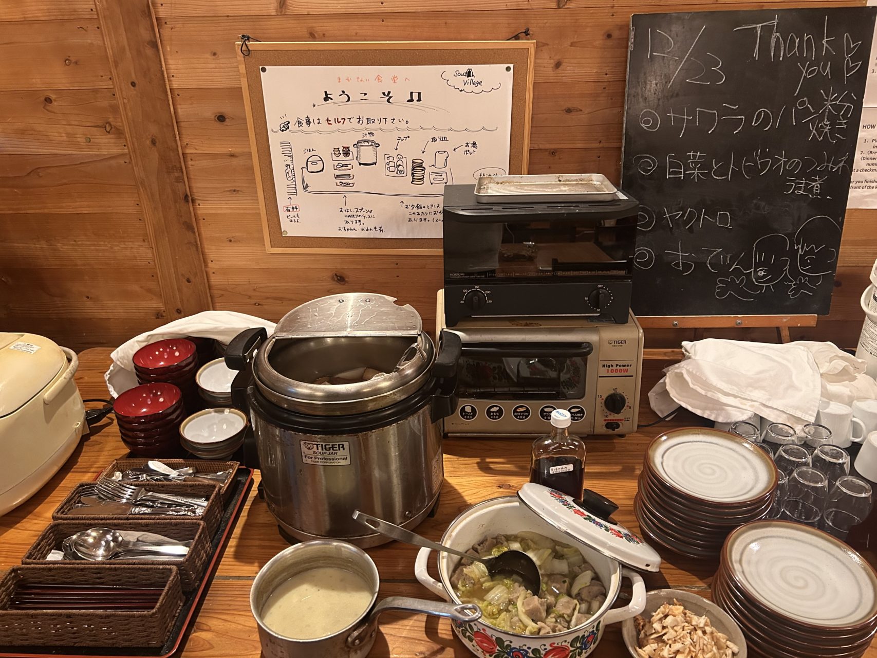 シェアハウスの方々もスープやおでん、お刺身などたくさんの料理を用意してくださいました😭