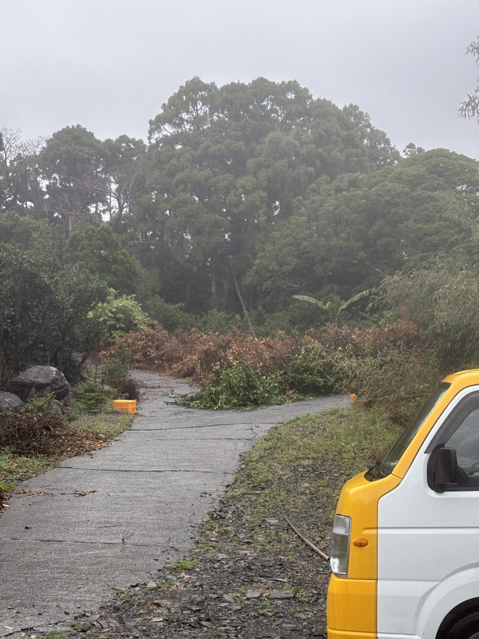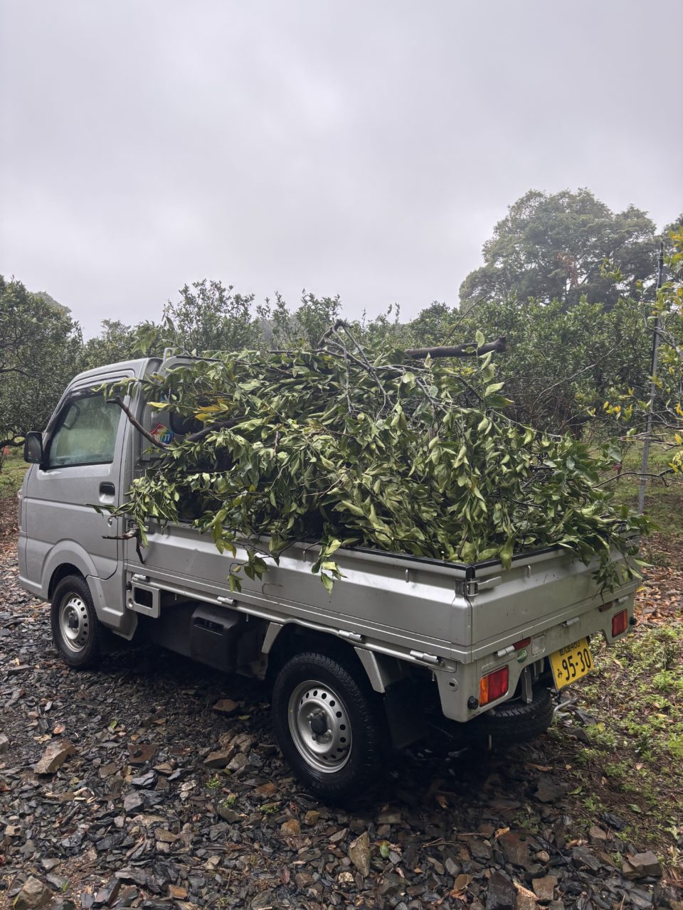 4日目の今日はみかん農園で苗植えと選定して伐採した木の運搬をしました!苗植えでは50本ほど苗を植え、こんなに小さな木(ほぼ枝くらいの小ささ)があんなに大きくなって実をつけると思うと感慨深い思いでした。そして運搬作業は選定して伐採した枝を焼却場まで運びました。農家の方が「これが農業なんだよなあ」とつぶやいているのを聞き、農業というと収穫の華々しい印象がありますが、その裏にはこういった小さくて地道な作業がたくさんあって、その集大成が一粒のみかんなんだなと思いました。そう考えるとみかんの美味しさがより際立って、よりありがたく感じました。このボランティアを通して、収穫よりももっと日常で影の存在だけどとても大切といった作業を知り経験できてよかったです。今日は1日雨と曇りを繰り返す天気でしたが、雨の中の作業はより達成感を増し、作業後に行った湯泊温泉を何倍も楽しめました!