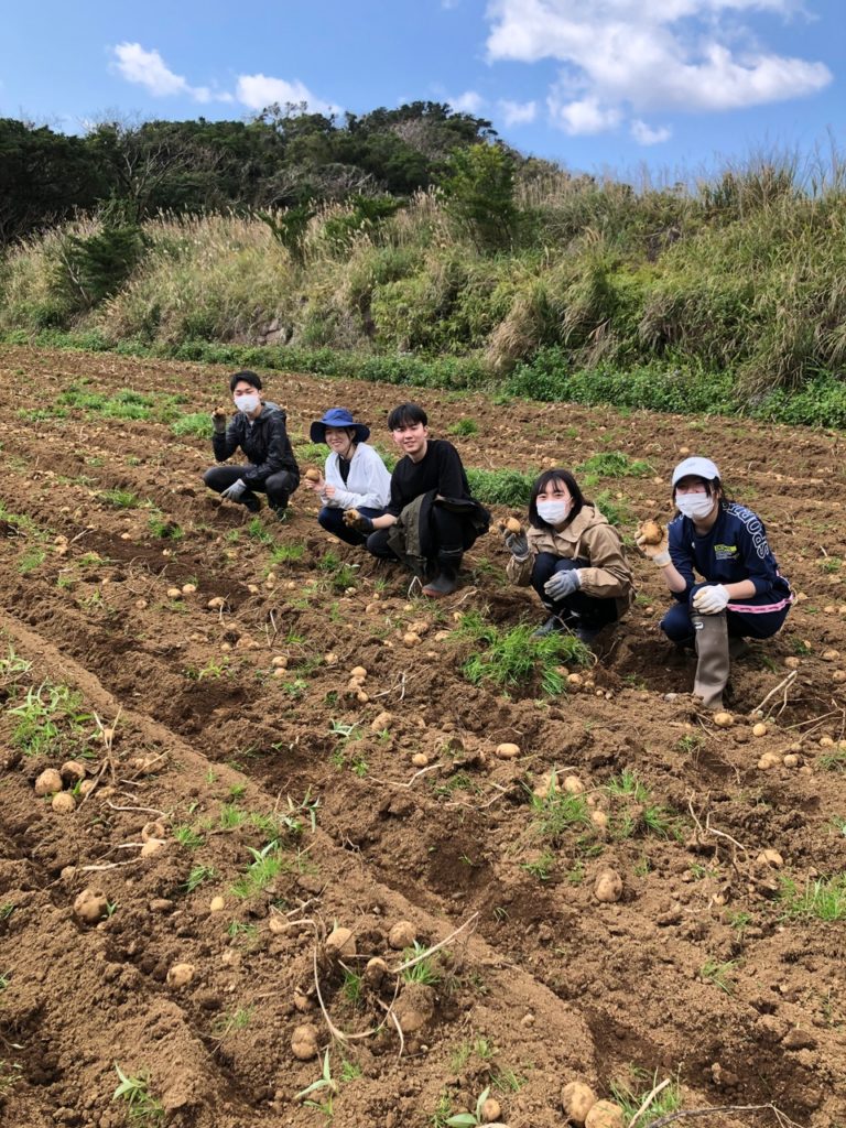 今日は農家さんの畑でじゃがいもの収穫(芋掘り)をしました。10月頃からじゃがいもは育て始められ、2月~3月頃にじゃがいもの収穫が行われるようです。その2月の収穫時期に私たちは当たったため、じゃがいも掘りをしました。