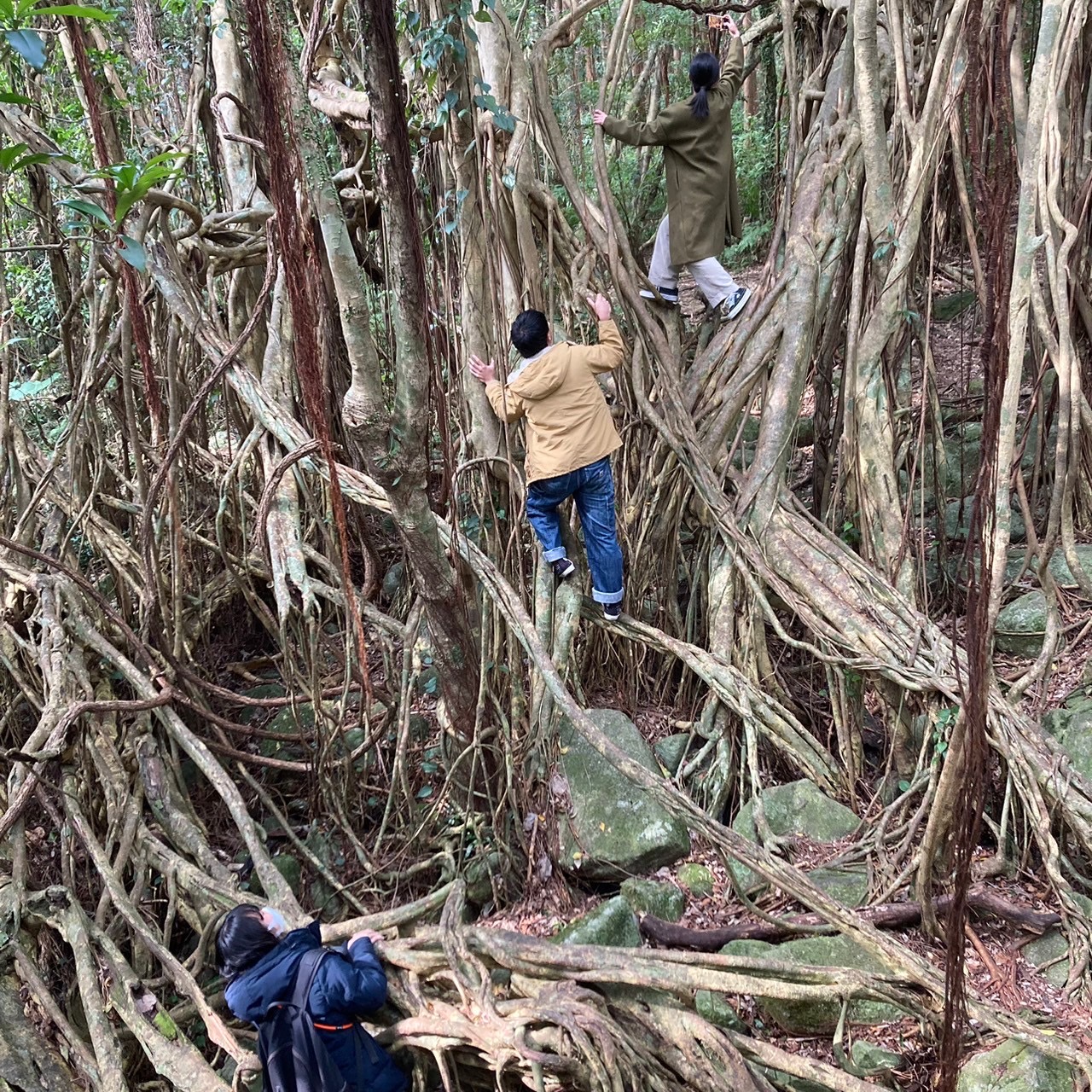 ガジュマルはかなり頑丈で、みんなで木登りができるほどでした!