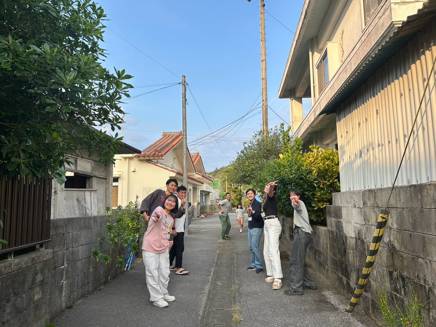 本日は初日!嘉陽という地域について学びました。実際に近所を散歩してどのような歴史、伝統があるかを知るとこができた。内地とは異なり、仏壇が元々家に備わっていることやトートーメーにウートートーと唱えるという文化があることなど様々な発見をしました。また、私自身の沖縄のイメージは海が強く農業が栄えているとは考えたこともなかった。しかし、嘉陽という地域を今回知り農業を行っている人々をたくさん見ました。沖縄の魅力をより知れた気がして嬉しかったです!!出会う嘉陽の方全てが内地の人間である私たちに優しく接してくれて実家のような温かみを感じました。ここに来なければ感じれなかった気持ちを体験できて恵まれているなと感じました。私たちが地域の人々に受けいれてもらっているという気持ちと感謝を忘れずこれからの日々を過ごしていきたいと思います!!