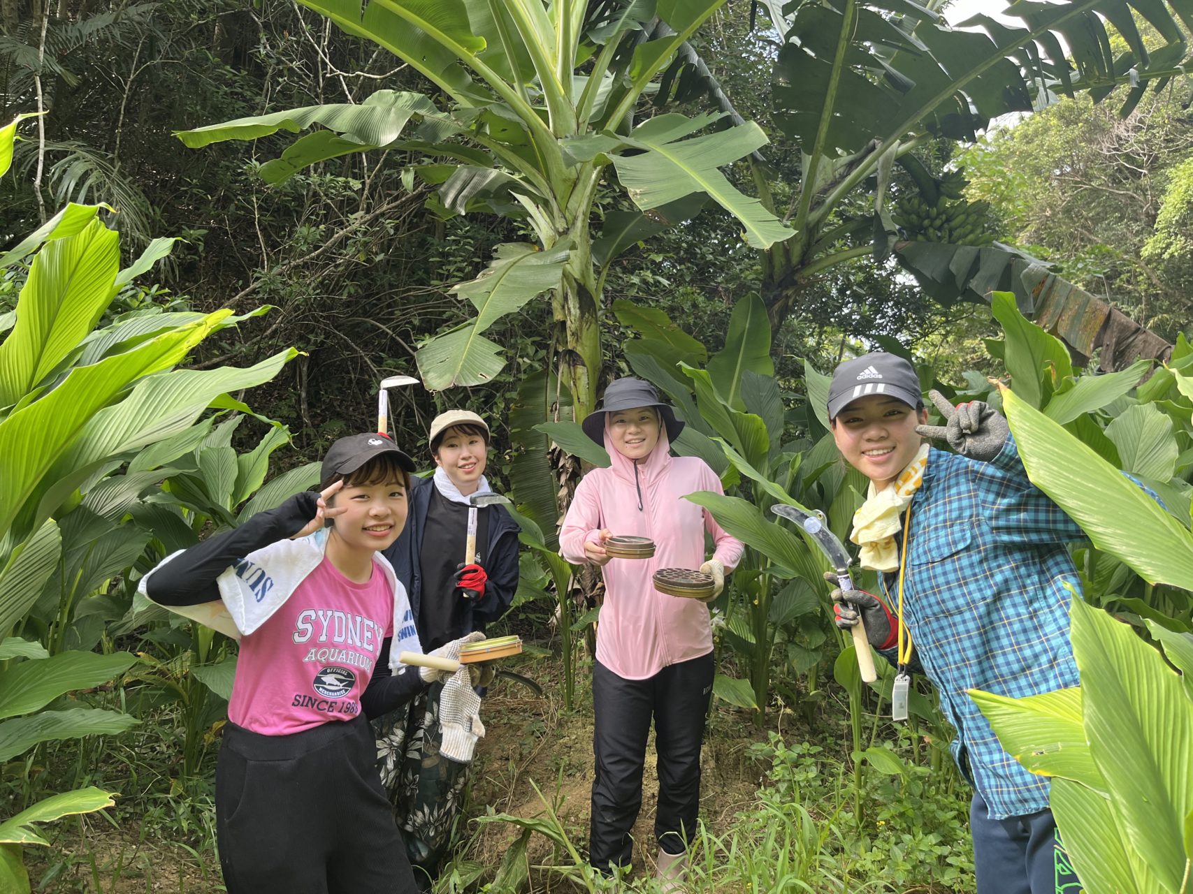 今日の日中は、ウコン畑で草取りをしました。ウコンの収穫時期は1月であるそうですが、畑には既に自分の背丈を越えるウコンが育っていました。大きさは肥料や日当たりによって変わってくるそうです。太くて立派な茎、日差しを遮ることができるくらい大きな葉っぱに囲まれて小人になった気分でした。現在関東には台風が近づいていますが、沖縄北部は台風の進路となることが多く、汗水垂らして草取りを行なっても全滅になるほど大きな被害を受けることが多くあると聞きました。