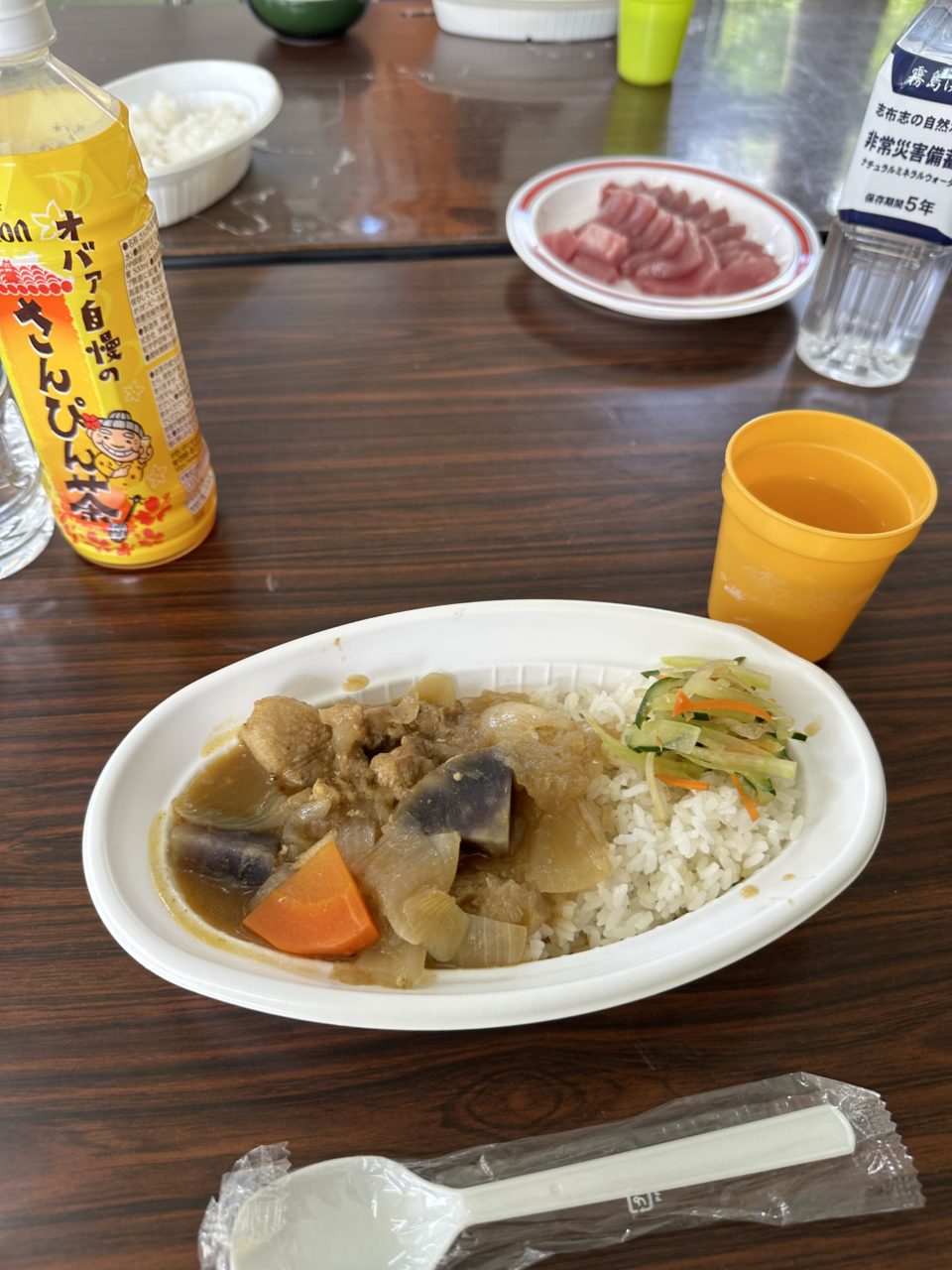 お昼には料理がとても上手なお母さんが作ったカレーと地元の漁師さんが釣ったマグロをお腹いっぱい食べさせていただきました!カレーは具沢山で素材の美味しさをそのまま感じることができました。素材の美味しさを感じることでお腹だけで心まで満たされるのだと幸せな気持ちになれました!