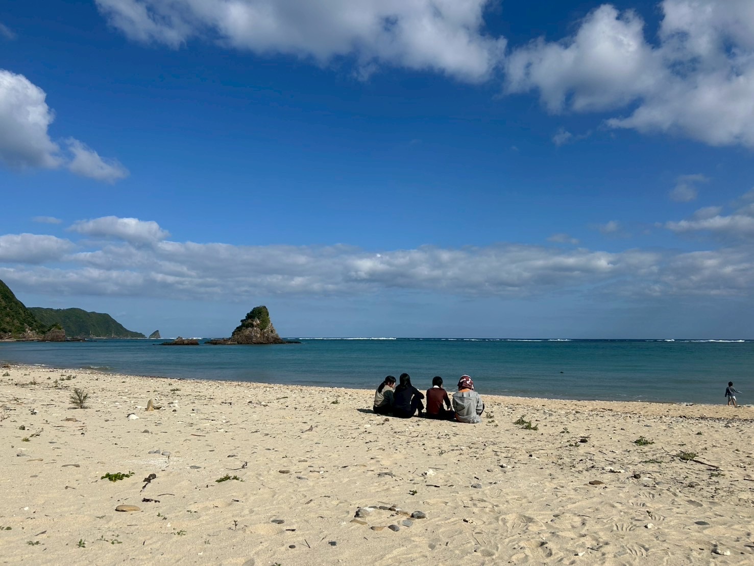 今日は今回の日程中で1番と言っていいほどいい天気だったので、片付け終わった後に4人で売店でアイスを買って、海で食べました!