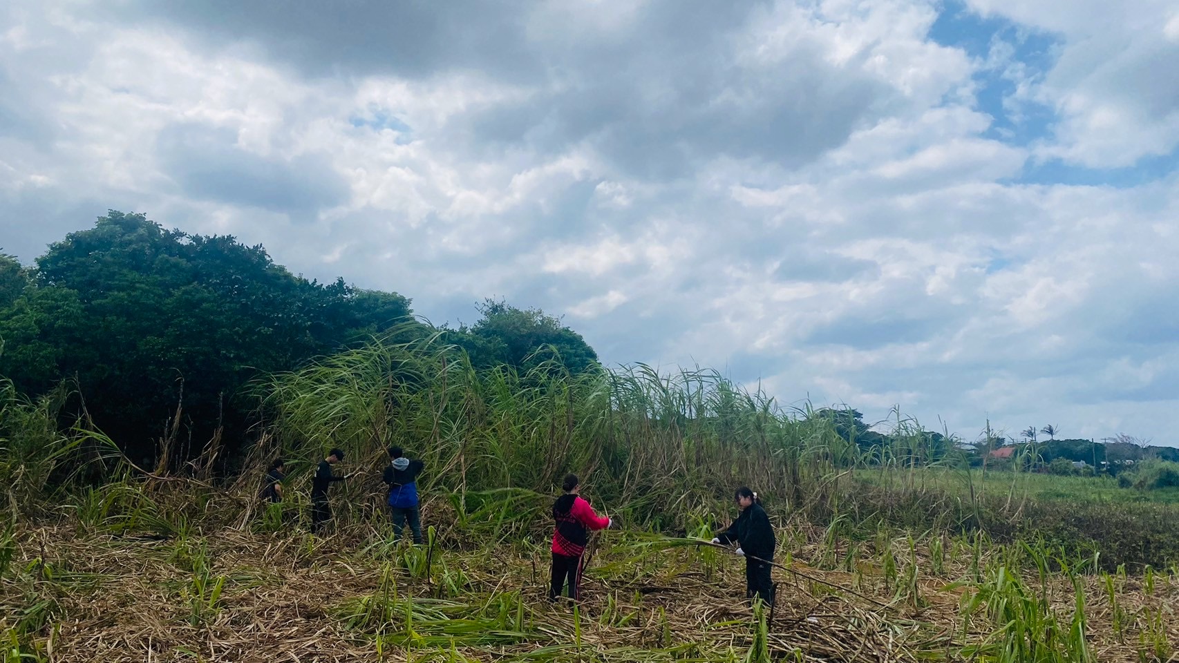 午後はサトウキビ刈りを行いました。地面ギリギリでサトウキビを刈るのはかなり大変な作業に感じましたが、畑が綺麗になっていくのはやりがいがありました。