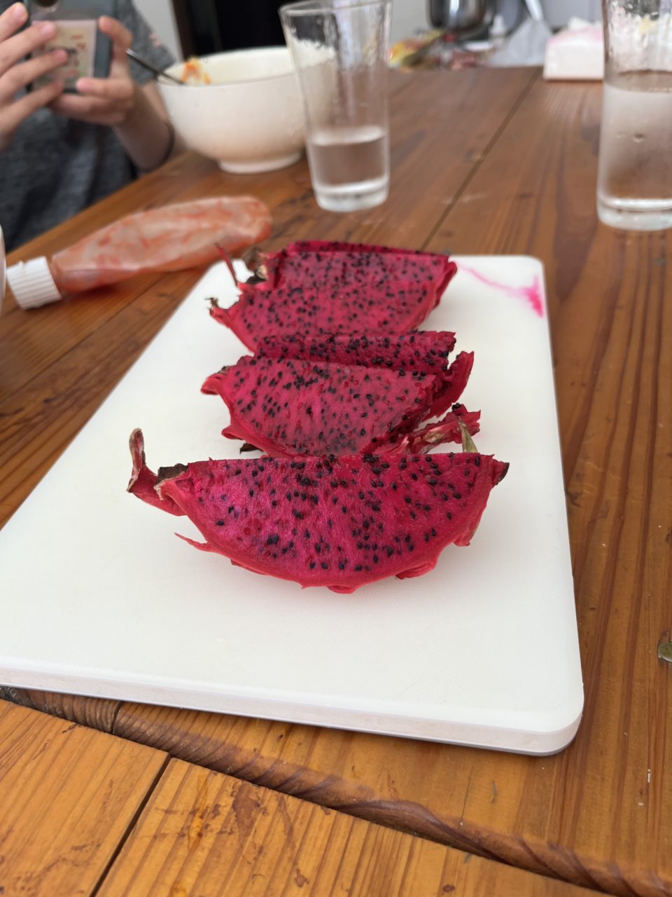 午前中は、昨日もお世話になった花の整備を行いました。昨日とはまた違った内容で、神経を使いながらの作業でしたが、だんだんみんな慣れてきてあっという間に午前の作業は終わりました。お昼には、昨日いただいたドラゴンフルーツをみんなで食べました!例えも思いつかない初めての味でしたが、すごく美味しかったです!!
