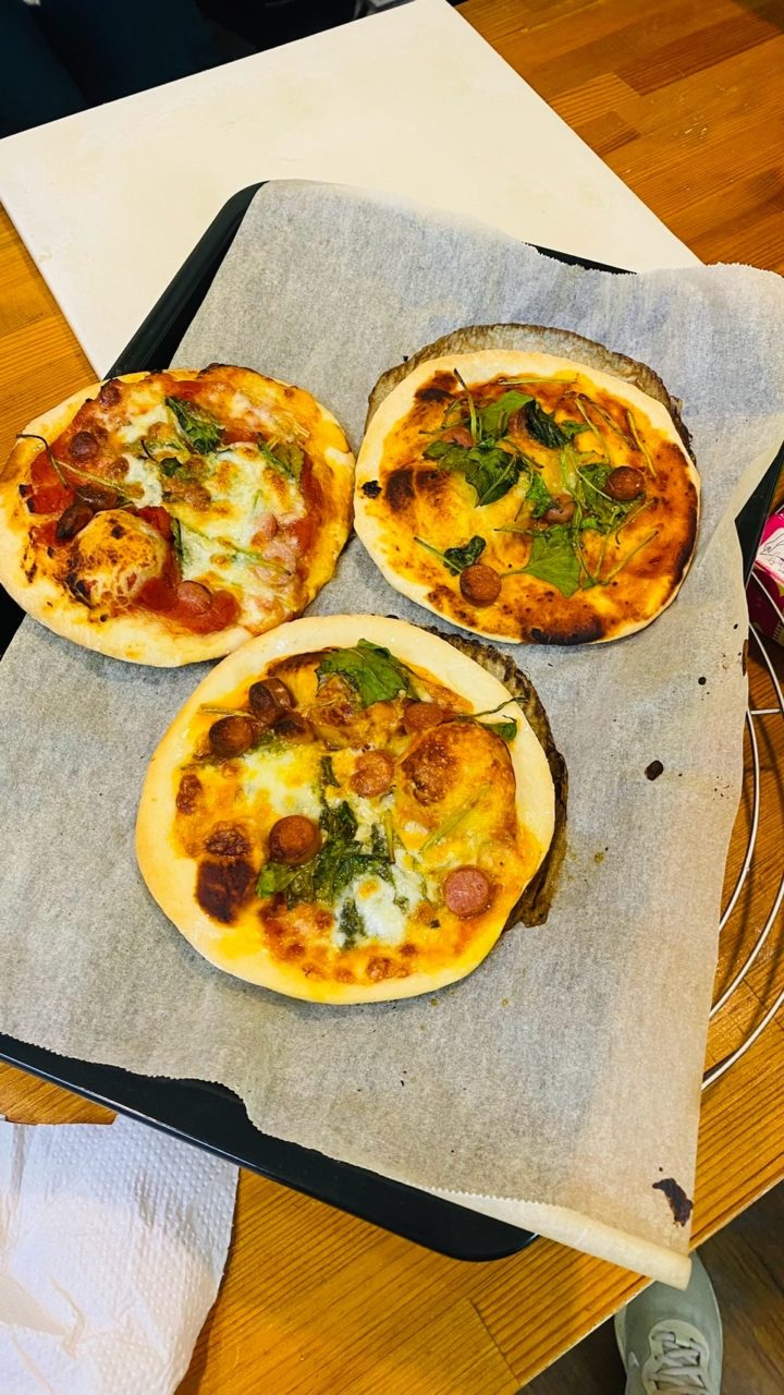 野口さんの監修のもと、それぞれ作りたいレシピを調べ、みんなで協力しながら調理しました。私たちはあんぱん、チーズパン、クロワッサン、カメロンパン、黒糖蒸しパン、ラングドシャ、フォカッチャ、ピザ、うどんの計9品を作りました!!