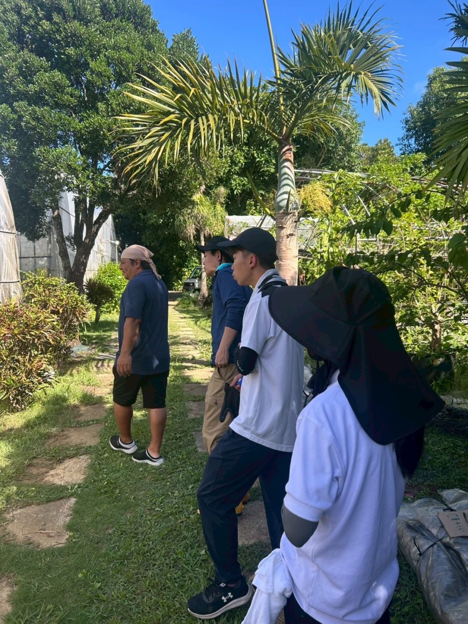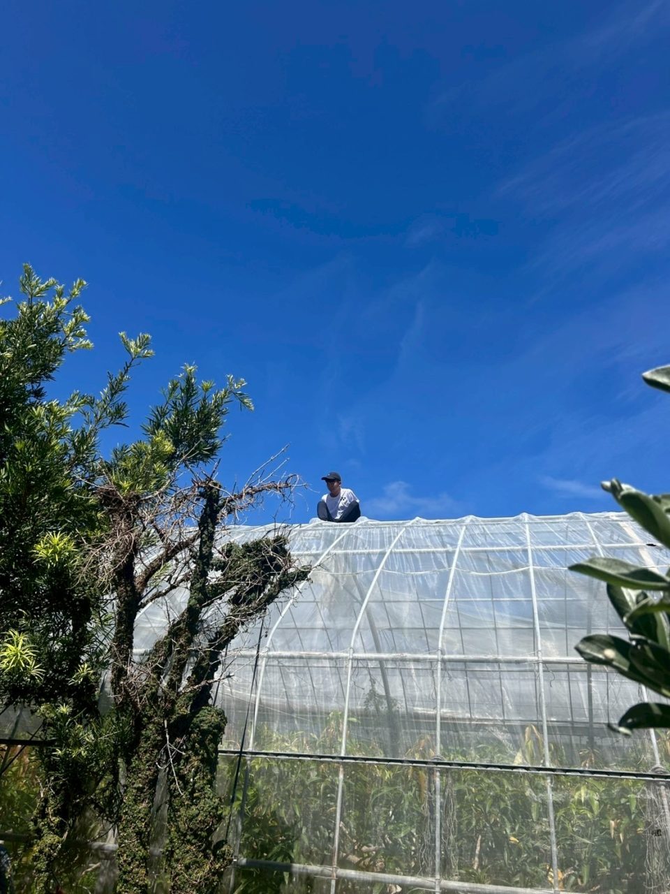 ビニールハウスの上は足場が不安定で常に緊張感を持って作業する必要があり、かつ太陽が直接照りつけるのでかなり大変な作業でしたが、休憩時間にシャロン農園さんで作った生マンゴーを頂けると聞いていたので、それを励みに頑張りました!