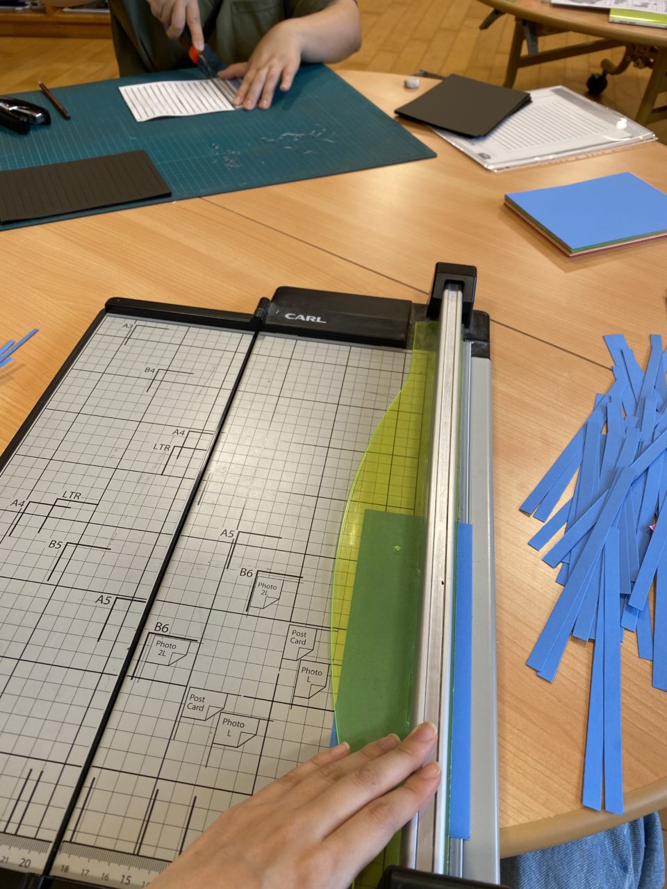 画用紙を切っていく作業で、すぐにずれてしまうのが繊細でコツを掴むのが難しかったです。先生と話して、ハレルヤ子ども園と島の特徴や先生の人生を教えていただき自分を見つめ直すきっかけになりました。帰る前にお祈りをしていただいて子ども園の個性が溢れていてとても素敵だなと思いました。