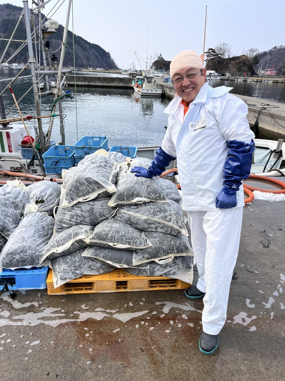 メッシュ袋に入ったワカメはひとふくろ20kgくらいかな?人生で初めて「ワカメが重いっ!」と言葉にしました。いい経験でした。