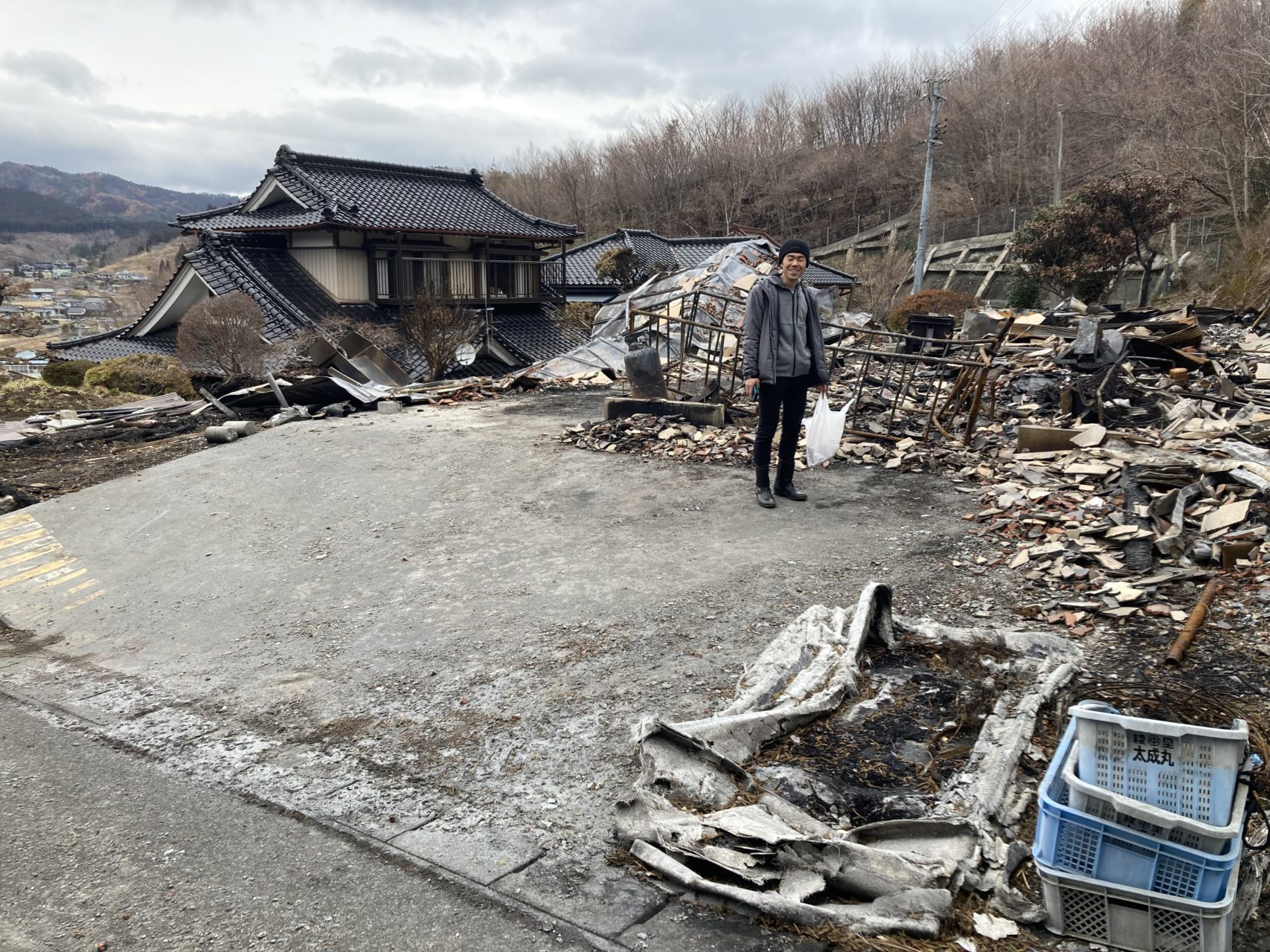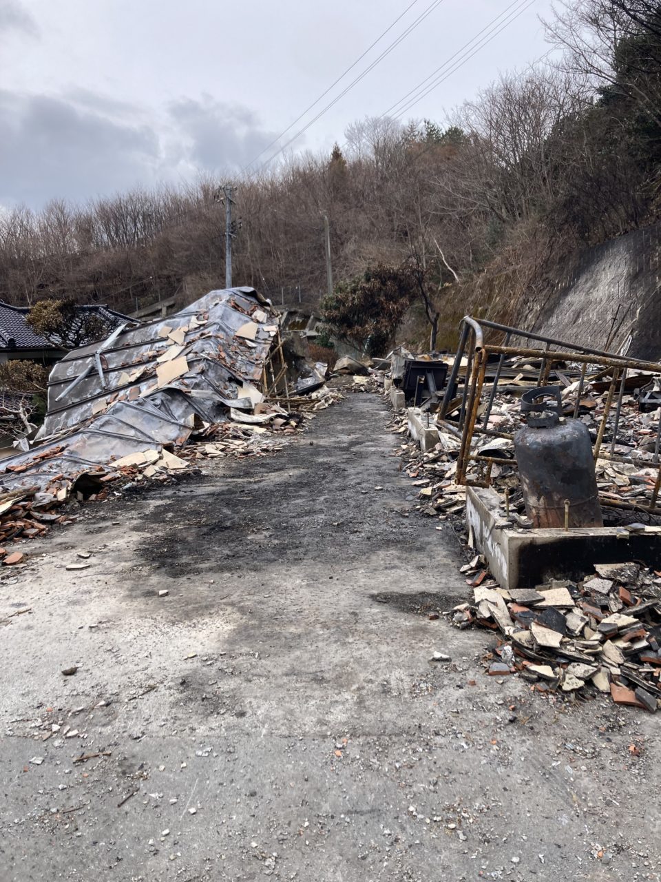 綾里で火災の被害に遭った家庭の瓦礫撤去や清掃を実施しました。現場の状況を確認して、火災の規模を改めて実感しました。