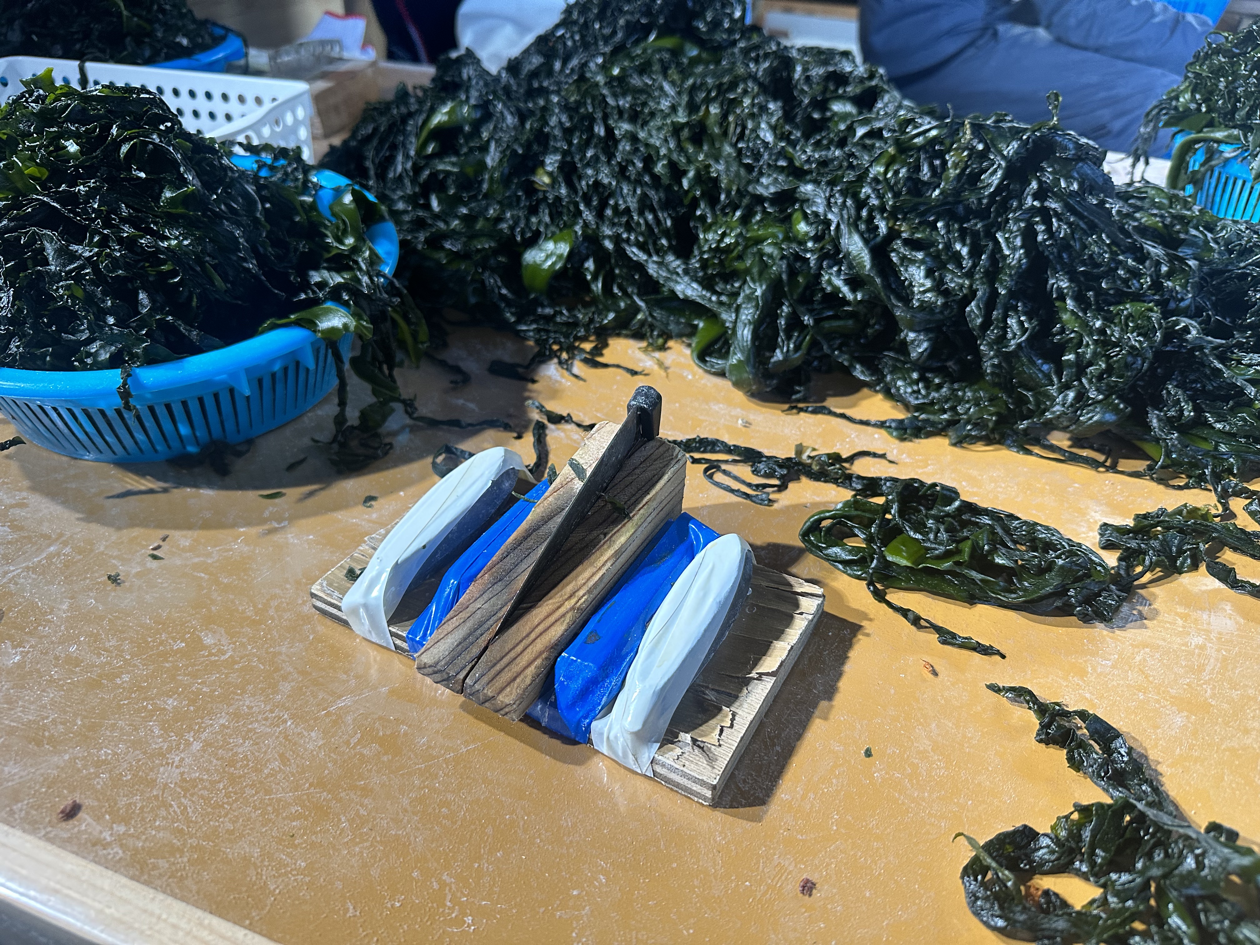 空が明るくなってきた頃、港へ戻り、陸に上がって朝食をいただきました。すると不思議なことに、急に元気が回復。その後は昨日と同じようにワカメを茹でる作業を行うことができました。